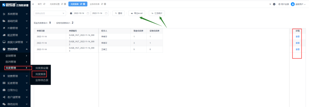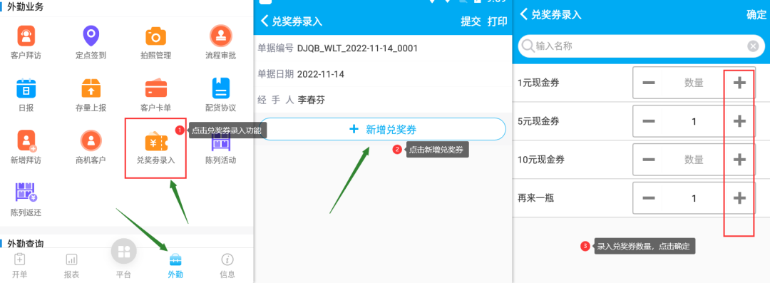 發(fā)表時間:2022-12-07 11:44作者:管家婆物聯(lián)通 ? ? ![]() 兌獎券 ![]() 功能說明 實現(xiàn)業(yè)務(wù)員做銷售時,收取商品的兌獎券,在收取兌獎券時給客戶進(jìn)行獎品兌換,手機(jī)端將收取的獎券做記錄,后臺可以直接將獎券做匯總形成報表,方便財務(wù)對賬 ![]() 使用流程 物聯(lián)通后臺先設(shè)置獎券類型 業(yè)務(wù)員收取獎券時做兌獎券錄入提交 財務(wù)直接查看兌獎券報表 ![]() 使用方法 ![]() 兌獎券設(shè)置 ![]() 物聯(lián)通后臺--營銷策略--兌獎管理--新增獎券類型 ![]() 【現(xiàn)金兌獎券】:設(shè)置現(xiàn)金兌獎券,設(shè)置兌獎券價值金額 ![]() ![]() 手機(jī)端做兌獎券錄入并提交 手機(jī)端外勤模塊中,點擊兌獎券錄入功能,去錄入收取的兌獎券的數(shù)量,點擊確定 ![]() 兌獎券錄入后,去提交 ![]() *此單據(jù)支持藍(lán)牙小票打?。ㄗ⒁猓捍蛴⌒枰谔峤磺按蛴?,提交后手機(jī)端無法查看,不能打?。?/p> ![]() 物聯(lián)通網(wǎng)頁端查看兌獎券報表 物聯(lián)通后臺--營銷策略--兌獎管理--兌獎報表進(jìn)行查看 ![]() 報表默認(rèn)按照提交的兌獎券錄入單據(jù)查看,支持按照業(yè)務(wù)員進(jìn)行匯總,支持導(dǎo)出excel 注意:此功能為物聯(lián)通的定制客戶該功能,不和管家婆系統(tǒng)關(guān)聯(lián),不會影響管家婆中的任何數(shù)據(jù)。 ![]() ![]() |