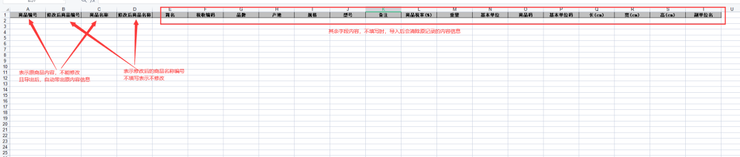 2)商品導(dǎo)入修改——支持批量導(dǎo)入修改商品多個信息, 注:a.商品名稱與編號為空時,表示不修改原商品名稱與變化信息 b.其他商品字段信息,為空導(dǎo)入會后清除原字段信息 操作如下圖: