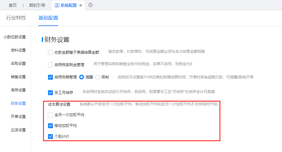 7、基礎(chǔ)資料——導(dǎo)入模板優(yōu)化 往來單位、期初庫存商品、期初應(yīng)收應(yīng)付、導(dǎo)入修改的Excel模板,列寬特別小需要手動拉一下,易用性較差,調(diào)整了模板列寬到適度寬度。 8、會員——科目處理 預(yù)收賬款改名:預(yù)收賬款合計,增加二級科目:預(yù)收賬款、會員儲值 9、服務(wù)類商品——支持設(shè)置參考成本價 服務(wù)商品支持設(shè)置參考成本,銷售類單據(jù)右鍵查看銷售毛利服務(wù)商品成本取參考成本 10、云倉——線下單據(jù)提交云倉優(yōu)化 線下出庫類單據(jù)(銷售出庫單、采購?fù)素泦巍?其他出庫單),增加寄件人信息、開啟云倉模塊時,支持將提交至云倉流程。 11、成本算法——支持移動加權(quán)法 支持移動加權(quán)成本算法(本版默認不開啟,需要開啟的用戶可聯(lián)系服務(wù)同事提客戶問題后臺啟用) 系統(tǒng)配置-財務(wù)設(shè)置中,支持對成本算法進行配置:全月一次加權(quán)成本算法與移動加權(quán)法不支持同時開啟。開啟對應(yīng)算法后,商品信息中可針對不同商品設(shè)置不同成本算法。