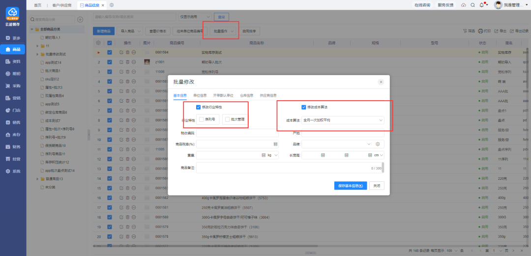 12、商品信息導(dǎo)出——支持導(dǎo)出圖片 商品信息列表,導(dǎo)出時支持導(dǎo)出商品圖片 13、商品信息——相關(guān)優(yōu)化 1)新增批量修改商品的行業(yè)特性: 當商品未被使用時,可以進行批量修改;同時批量修改合并為一個操作,如圖: