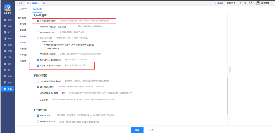 C. 負庫存管理維度到實物庫存級別,同時如不需要管理實物庫存,可以在系統(tǒng)配置出入庫完成后自動過賬,如圖