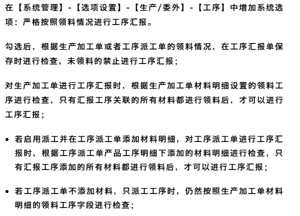注:系統(tǒng)不針對材料領料數(shù)量做具體控制,只要所有關聯(lián)的材料有領料業(yè)務數(shù)據(jù),即可進行工序匯報。 ![]() 以上就是「工序匯報」的功能迭代,有需要的小伙伴抓緊去體驗吧。 更多用友軟件操作問題,可以聯(lián)系梁老師18110593406 長按識別二維碼添加好友,及時解答 點分享 點收藏 點點贊 點在看 |