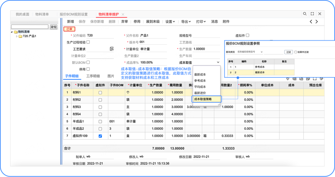 發(fā)表時(shí)間:2023-01-07 16:48 應(yīng)用場(chǎng)景 根據(jù)用戶自定義的取價(jià)規(guī)則,對(duì)物料清單中的材料進(jìn)行成本取價(jià)。 產(chǎn)品方案