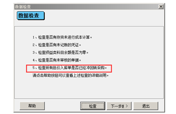 C、在2023年的賬套中做年結(jié)存:文件--年結(jié)存-數(shù)據(jù)檢查,檢查完成之后,點(diǎn)擊下一步