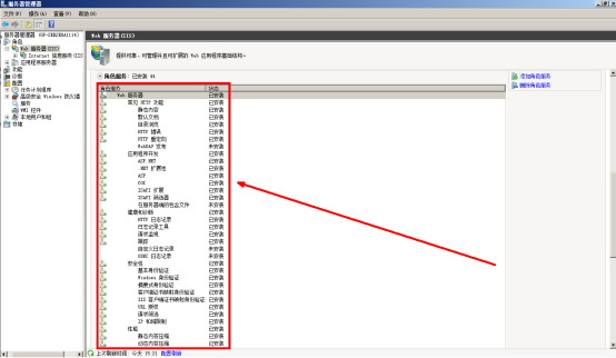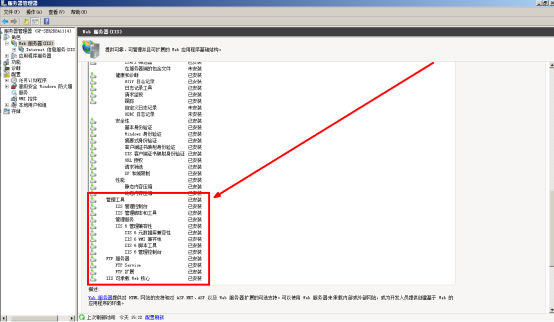5、全部勾選后點擊下一步并進行【安裝】,等待安裝完成即可;安裝完成后在管理界面點擊左上角角色下的【W(wǎng)eb服務(wù)器IIS】,在右側(cè)界面上下拉至角色服務(wù),檢查角色服務(wù)是否完成安裝