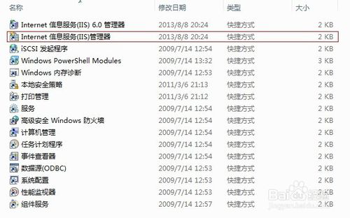 7、進入管理工具窗口,此時就可以看到internet信息服務了,不過此時需注意,因為有兩個大致相同的,需要選擇的是internet信息服務(IIS)管理器。