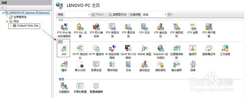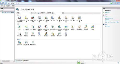 8、雙擊internet信息服務(IIS)管理器,進入到管理窗口,看上去很復雜,有三大主要功能:FTP,IIS,管理,現在需要設置都在IIS這個里面。