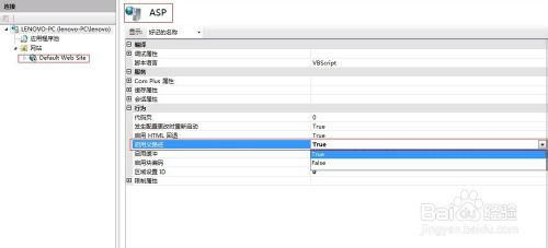 10、進入ASP設置窗口,行為下面的啟用父路徑,點擊后面,修改為true,默認為false。