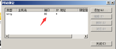 14、進入網址綁定窗口,也就是端口設置窗口,設置為80端口。