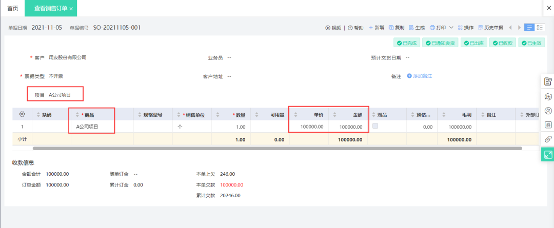 掃碼試用30天 1> 根據(jù)洽談好的項(xiàng)目合同填制銷售訂單,輸入表頭項(xiàng)目,表體輸入項(xiàng)目名稱(勞務(wù)屬性商品); 2>根據(jù)項(xiàng)目采購材料:企業(yè)不涉及到庫存,材料直接到項(xiàng)目工地,做進(jìn)貨單入“項(xiàng)目倉”,并標(biāo)記具體項(xiàng)目; 3>根據(jù)進(jìn)貨單直接【復(fù)制】生成銷貨單直接出庫; 4>收到第一期項(xiàng)目款: 由銷售訂單生成銷貨單,根據(jù)收到的貨款確認(rèn)應(yīng)收; 5>項(xiàng)目發(fā)生的費(fèi)用,用【費(fèi)用支出單】按“項(xiàng)目”登記具體的費(fèi)用; 6>查閱項(xiàng)目報(bào)表: 按項(xiàng)目查詢銷售毛利分析表,查看毛利情況。 更多用友軟件操作問題,可以聯(lián)系梁老師18110593406 長按識(shí)別二維碼添加好友,及時(shí)解答 點(diǎn)分享 點(diǎn)收藏 點(diǎn)點(diǎn)贊 點(diǎn)在看 |