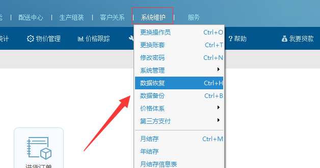 數(shù)據(jù)恢復(fù) 輝煌版 登陸到軟件里面后 在系統(tǒng)維護下---數(shù)據(jù)恢復(fù)