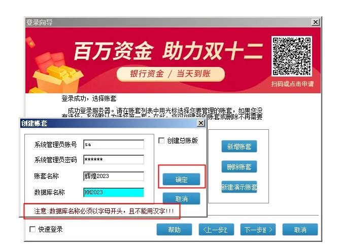 3、新建一個賬套,登陸軟件到選擇賬套那一步的時候,選擇新增賬套,創(chuàng)建一個2023年賬套。