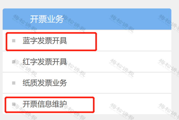 二、選擇【藍(lán)字發(fā)票開具】。如下圖: