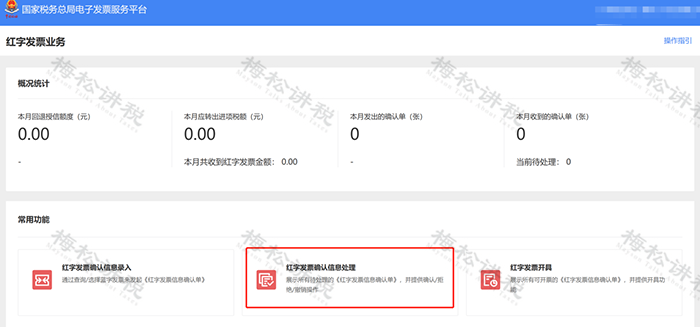 (4)點(diǎn)擊【確認(rèn)】按鈕,提示確認(rèn)成功。 二、受票方繼續(xù)使用【增值稅發(fā)票綜合服務(wù)平臺(tái)】,由開票方在電子發(fā)票服務(wù)平臺(tái)填開并上傳《確認(rèn)單》,經(jīng)受票方在增值稅發(fā)票綜合服務(wù)平臺(tái)確認(rèn)后,開票方全額或部分開具紅字全電發(fā)票或紅字紙質(zhì)發(fā)票。 確認(rèn)操作如下: (1)在菜單中依次選擇【發(fā)票管理】—【紅字申請確認(rèn)】,進(jìn)入如下界面。
