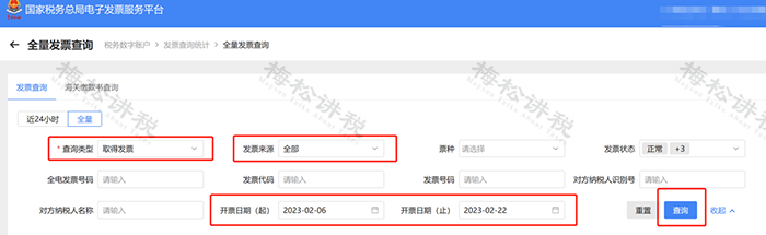 三、輸入查詢條件后,點(diǎn)擊查詢,即可查看取得的發(fā)票。