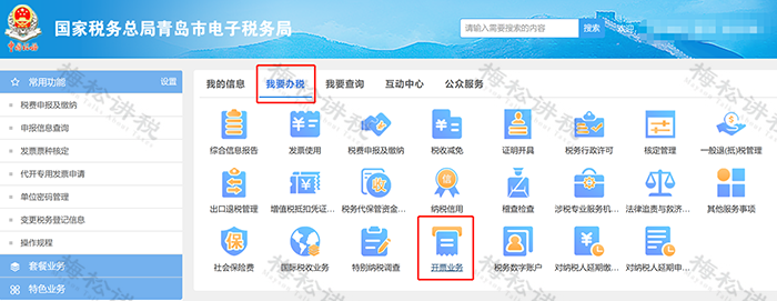 其中,特殊業(yè)務(wù)包括但不限于稀土、卷煙、建筑服務(wù)、旅客運(yùn)輸服務(wù)、貨物運(yùn)輸服務(wù)、不動(dòng)產(chǎn)銷售、不動(dòng)產(chǎn)經(jīng)營租賃服務(wù)、農(nóng)產(chǎn)品收購、光伏收購、代收車船稅、自產(chǎn)農(nóng)產(chǎn)品銷售、差額征稅等。 全電發(fā)票如何開具? 一、登錄電子稅務(wù)局,【我要辦稅】——【開票業(yè)務(wù)】。如下圖: