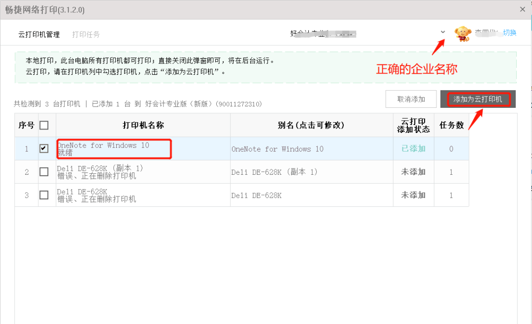 方式二:選擇【云打印機(jī)】,需要輸入軟件的賬戶(hù)密碼,選擇正確的企業(yè)名稱(chēng),將要打印機(jī)設(shè)置為網(wǎng)絡(luò)打印機(jī)即可打印憑證,維護(hù)好這些信息后,插件自動(dòng)運(yùn)行到桌面的右下角,該優(yōu)勢(shì)既可要打印憑證也可以打印庫(kù)存單據(jù)共同使用;