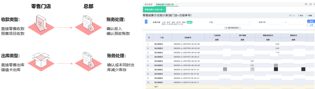采用多種結(jié)算方式,組合支付,如:現(xiàn)金、銀行卡、儲(chǔ)值余額、積分抵現(xiàn)、代金券、聚合支付等。 【零售單】自動(dòng)生成零售結(jié)算單、收款單,財(cái)務(wù)人員可通過“零售結(jié)算方式統(tǒng)計(jì)表”來核對(duì)收銀情況。 財(cái)務(wù)或老板,查看【零售統(tǒng)計(jì)-零售結(jié)算方式統(tǒng)計(jì)表】,可以查看各門店收銀的記賬信息。 暢捷通T+專屬云助力烘焙企業(yè)實(shí)現(xiàn)全領(lǐng)域應(yīng)用,探索降本增效新路徑。 更多用友軟件操作問題,可以聯(lián)系梁老師18110593406 長按識(shí)別二維碼添加好友,及時(shí)解答