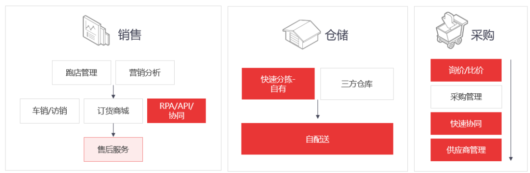 2022年中國烘焙食品行業(yè)市場規(guī)模達(dá)2853億元,同比增長9.7%。隨著人均消費(fèi)水平的增長及餐飲消費(fèi)結(jié)構(gòu)調(diào)整,中國烘焙食品市場將持續(xù)擴(kuò)容,2025年市場規(guī)模預(yù)計(jì)達(dá)到3518億元。 1 銷售端有跑店管理、營銷分析、訪銷、售后服務(wù)等,形成內(nèi)部一體化流程。訂單產(chǎn)生后,能夠?qū)崿F(xiàn)倉儲(chǔ)快速分解,進(jìn)行自配送。通過前端的銷售和倉儲(chǔ),自動(dòng)形成詢價(jià)、比價(jià)等管理。