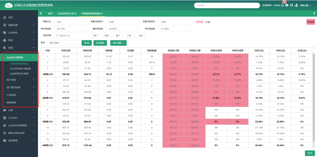 針對(duì)企業(yè)本年度的規(guī)劃內(nèi)容,進(jìn)行目標(biāo)達(dá)成的實(shí)時(shí)檢視??砂床块T、職員、地區(qū)、客戶、產(chǎn)品等多維度進(jìn)行各目標(biāo)達(dá)成情況檢視;企業(yè)根據(jù)規(guī)劃情況,即時(shí)檢視目標(biāo)的達(dá)成情況,根據(jù)檢視情況,對(duì)異常數(shù)據(jù)及時(shí)預(yù)案,以保證各項(xiàng)目標(biāo)的最終達(dá)成。