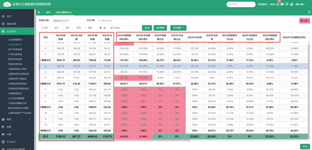 企業(yè)數(shù)字化轉(zhuǎn)型已成為時(shí)下各行業(yè)最熱門的話題之一,它不僅能為傳統(tǒng)企業(yè)進(jìn)行新一輪賦能,也能為企業(yè)帶來(lái)彎道超車的機(jī)會(huì)。如何能讓企業(yè)內(nèi)部大數(shù)據(jù)為企業(yè)經(jīng)營(yíng)提供及時(shí)準(zhǔn)確的決策依據(jù)?天通眼充分利用企業(yè)內(nèi)部經(jīng)營(yíng)大數(shù)據(jù),從風(fēng)險(xiǎn)評(píng)估、目標(biāo)制定及檢視等多個(gè)維度進(jìn)行數(shù)據(jù)實(shí)時(shí)分析,為決策層出具及時(shí)、準(zhǔn)確的數(shù)據(jù)分析報(bào)告,讓企業(yè)真正實(shí)現(xiàn)數(shù)據(jù)化經(jīng)營(yíng)。 企業(yè)經(jīng)營(yíng)是否向好?是否可以快速準(zhǔn)確發(fā)現(xiàn)經(jīng)營(yíng)中的異常情況?系統(tǒng)智能體檢模塊,可分別從年度總額(分月、季、年)、客戶維度、產(chǎn)品維度、職員維度及財(cái)務(wù)利潤(rùn)角度,用當(dāng)前年度與歷史3年的數(shù)據(jù)進(jìn)行各維度對(duì)比分析,對(duì)企業(yè)進(jìn)行多維度的風(fēng)險(xiǎn)體檢分析。