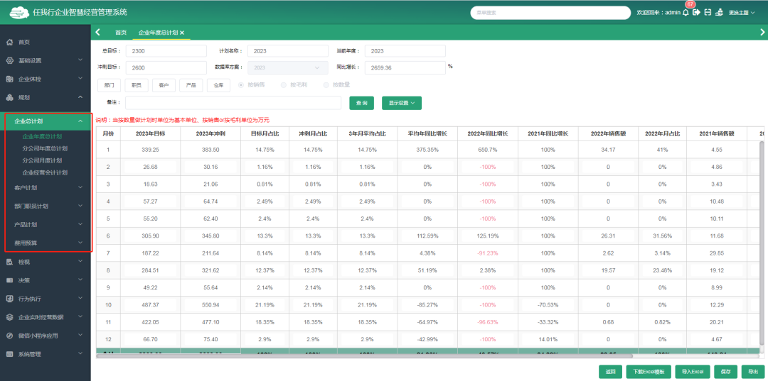 可針對(duì)企業(yè)過(guò)往幾年歷史業(yè)務(wù)數(shù)據(jù),進(jìn)行年度總計(jì)劃、部門年度總計(jì)劃、部門職員月度計(jì)劃、部門地區(qū)月度計(jì)劃以及客戶經(jīng)營(yíng)、費(fèi)用計(jì)劃等目標(biāo)設(shè)置。以企業(yè)歷史的業(yè)務(wù)數(shù)據(jù)為依托,更加準(zhǔn)確的制定本年目標(biāo)任務(wù)及企業(yè)整體規(guī)劃。