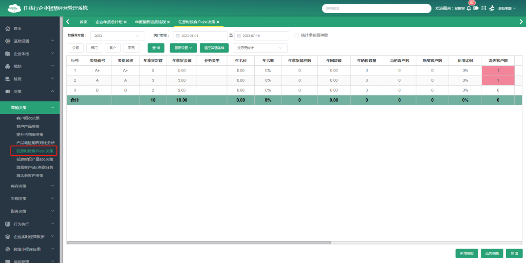 新客戶目標(biāo)任務(wù)及檢視,依據(jù)歷史數(shù)據(jù),對(duì)職員設(shè)置新客戶開發(fā)任務(wù)及任務(wù)達(dá)成情況的實(shí)時(shí)檢視。與此同時(shí),企業(yè)對(duì)客戶做ABC分類,準(zhǔn)確多維度數(shù)據(jù)規(guī)劃及檢視分析,防止客戶逐步流失,及時(shí)針對(duì)異??蛻糇鱿嚓P(guān)營(yíng)銷決策。