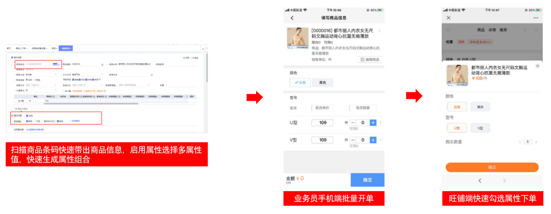 業(yè)務(wù)難點2:服裝建檔、多屬性銷售開單。服裝行業(yè)商品更新快、屬性多、尺碼多,建檔工作量大,客戶下單時商品混合下單,銷售錄單時需要逐一選擇,開單效率低。