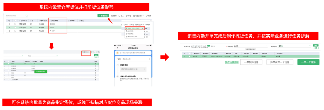 4、倉庫貨位、揀貨管理難。公司倉庫數(shù)量多、倉儲面積大、商品數(shù)量多,倉管人員揀貨慢,易出錯,銷售單商品多倉庫存放,需要人工拆單,分揀、匯總,溝通成本高工作量大。