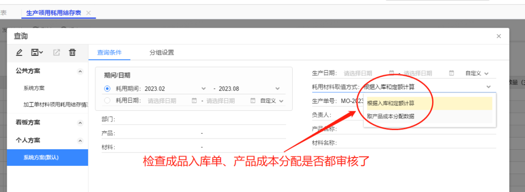 發(fā)表時(shí)間:2023-08-21 09:56作者:暢捷服務(wù) 【問題現(xiàn)象】 客戶正常做了生產(chǎn)加工單,也做了材料出庫,但是在【生產(chǎn)領(lǐng)用耗用結(jié)存表】取不到生產(chǎn)加工單的材料數(shù)據(jù)