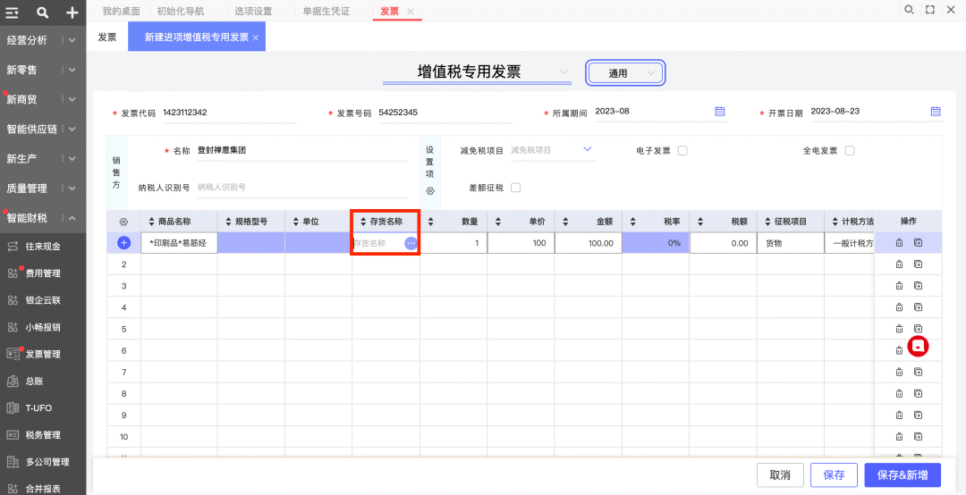 在發(fā)票詳情界面,點(diǎn)擊編輯,手工匹配存貨檔案;