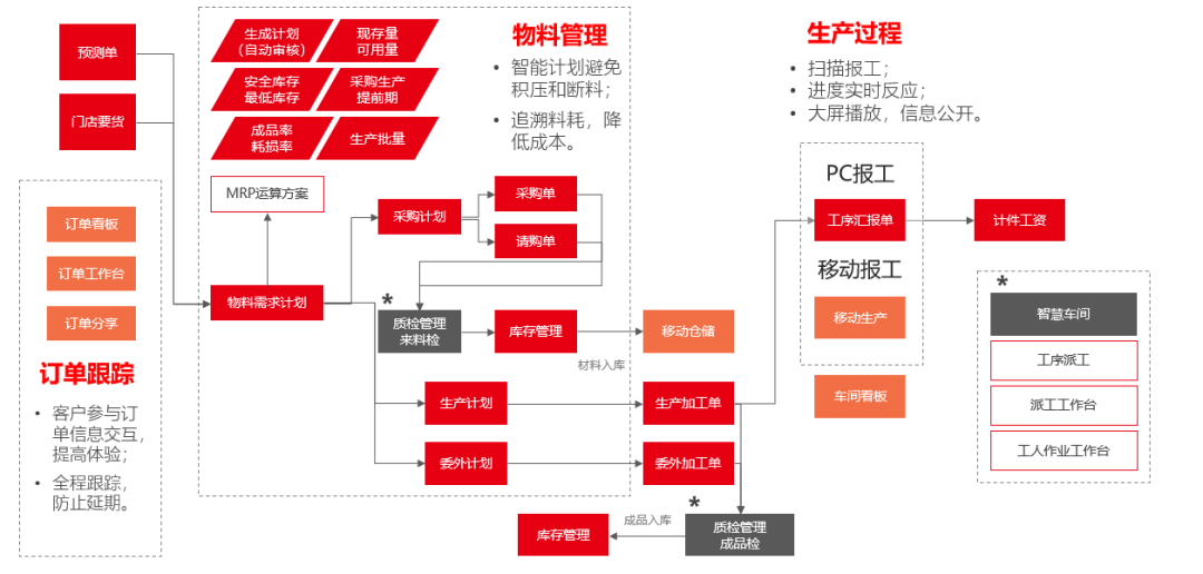 2)店加工管理 實現單品成本和原材料庫存管理,成本管控更精準。實現門店和工廠生產的閉環(huán)管理,通過生產端口預測物料計劃,比如說物料管理可以通過 MRP 來做這樣的審核,對采購的提前期做安全庫存的管理。