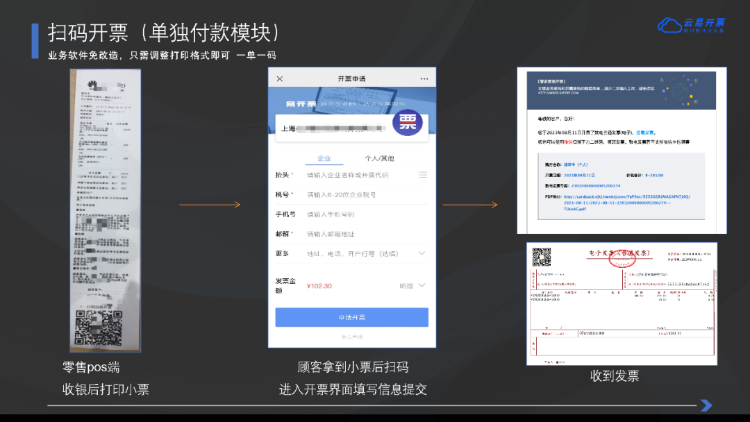 開票無法和ERP系統(tǒng)關(guān)聯(lián),需要逐單人工處理明細(xì),易出錯,業(yè)務(wù)系統(tǒng)無法統(tǒng)計確認(rèn)開票結(jié)果,門店工作量增加,顧客購物最后一公里體驗不夠完美。門店單獨(dú)處理開票業(yè)務(wù)時錯誤率高,后臺財務(wù)工作壓力增加。 上述問題節(jié)假日尤為明顯。為此,管家婆易開票提供了兩種快速準(zhǔn)確的開票方案,讓開票變得簡單。 實現(xiàn)自助開票:一單一碼,打印小票附帶開票申請碼,用戶掃碼后提交:抬頭、收票方式、手機(jī)/郵箱,自動開具發(fā)票且自動交付發(fā)票。(可設(shè)置申請票種) 支持銷售單、零售單、配送單掃碼開票。 ![]() 門店負(fù)責(zé)人登錄網(wǎng)頁手填或調(diào)單開具并打印發(fā)票。(業(yè)務(wù)信息和開票信息可由財務(wù)后臺統(tǒng)一設(shè)定對應(yīng)關(guān)系:商品開票名稱、開票稅率、開票稅收編碼、開票單位、開票規(guī)格等) ![]() 云易開票登記己方稅控開票信息 支持多稅號、多賬套、多操作員、多開票員 支持航天金稅、百旺金賦、稅務(wù)UKey、數(shù)電票 維護(hù)各門店權(quán)限及掃碼開票規(guī)則 財務(wù)統(tǒng)一維護(hù)ERP商品檔案、固定往來客戶的開票資料 商品開票名稱、稅收編碼、稅率、稅收政策等信息 軟件免改造,僅調(diào)試門店打印格式即可,交易后客戶掃碼自助開票 經(jīng)過簡單培訓(xùn),門店即可掌握從管家婆軟件內(nèi)篩選單據(jù)一鍵開發(fā)票 價值:在節(jié)假日來臨時,門店可專心服務(wù)好用戶,為最后一公里體驗加分。提升品牌形象,讓開票變得不再復(fù)雜。 END ![]() ![]() ![]() ![]() 更多管家婆軟件操作問題,可以聯(lián)系梁老師17374708361 長按識別二維碼添加好友,及時解答