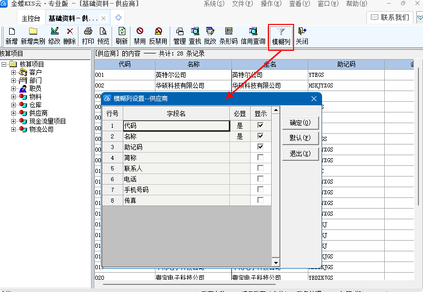 尊敬的用戶,您好! 1? 基礎(chǔ)資料 支持模糊列自定義 ![]() ![]()