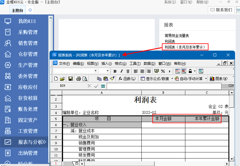 4? 報表與分析 新增利潤表(本月及本年累計)