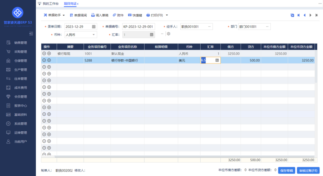 ![]() 項目憑證外幣支持修改匯率