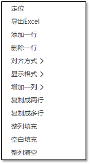 ①整列填充:當前列按光標行的數(shù)據(jù)直接進行填充,全部列的數(shù)據(jù)相同; ②空白填充:當前列按光標行的數(shù)據(jù)將空白數(shù)據(jù)進行填充; ③整理清空:將本利數(shù)據(jù)清除為空。