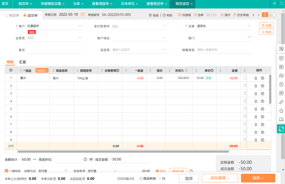 將每個(gè)代銷渠道想象成一個(gè)獨(dú)立的客戶倉(cāng)庫(kù),并以客戶的名字來命名這些倉(cāng)庫(kù)。這樣,在需要查詢特定客戶信息時(shí),可以輕松地通過客戶名稱找到相應(yīng)的倉(cāng)庫(kù)。 接下來,將所有寄存于這些客戶處的商品統(tǒng)一歸檔至對(duì)應(yīng)的客戶倉(cāng)庫(kù)中。這意味著,每次訪問某個(gè)客戶的倉(cāng)庫(kù)時(shí),就能夠清楚地看到存放在該客戶處的所有商品,包括商品名稱、數(shù)量以及金額等。 這種方法使得跟蹤和管理代銷商品變得更為直觀和方便。 ![]() ![]() 經(jīng)銷商和代銷客戶在銷售過程中,使用銷售清單來核算交易的貨物和貨款。完成客戶結(jié)算后,經(jīng)銷商可以根據(jù)需求給客戶補(bǔ)充庫(kù)存。 經(jīng)銷商還可以將其他商品寄存至客戶處。為了管理這種寄存商品,需要制作一張【調(diào)撥單】,這張單子記錄從經(jīng)銷商的倉(cāng)庫(kù)調(diào)撥至客戶倉(cāng)庫(kù)的商品詳情。 這個(gè)過程有助于保持庫(kù)存的有效管理和追蹤。 ![]() 經(jīng)銷商不僅可以可以使用電腦端查看銷貨金額,還可以通過手機(jī)端隨時(shí)隨地查看每日客戶結(jié)算金額,更加方便地了解銷售情況。 ![]() 在約定對(duì)賬期限,需核對(duì)客戶代銷的商品。完成后,將客戶已售商品記錄在【銷貨單】,選擇“客戶倉(cāng)”作為倉(cāng)庫(kù)。銷貨單金額即為結(jié)算金額,客戶據(jù)此結(jié)算。 ![]()