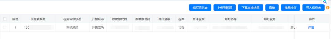 填寫號紅字信息表之點擊【確定】,等待稅局審核,后續(xù)【稅局審核狀態(tài)】為通過時,進行開票