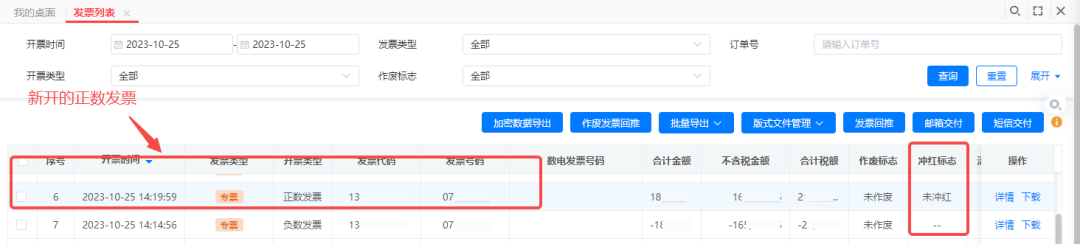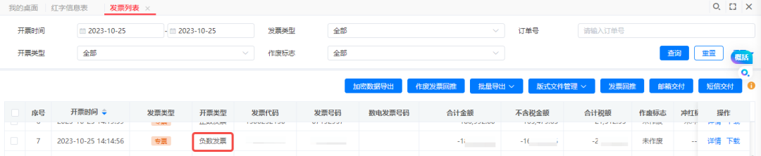 2、開具成功后,在發(fā)票列表中查看,可以看到一張負數(shù)發(fā)票