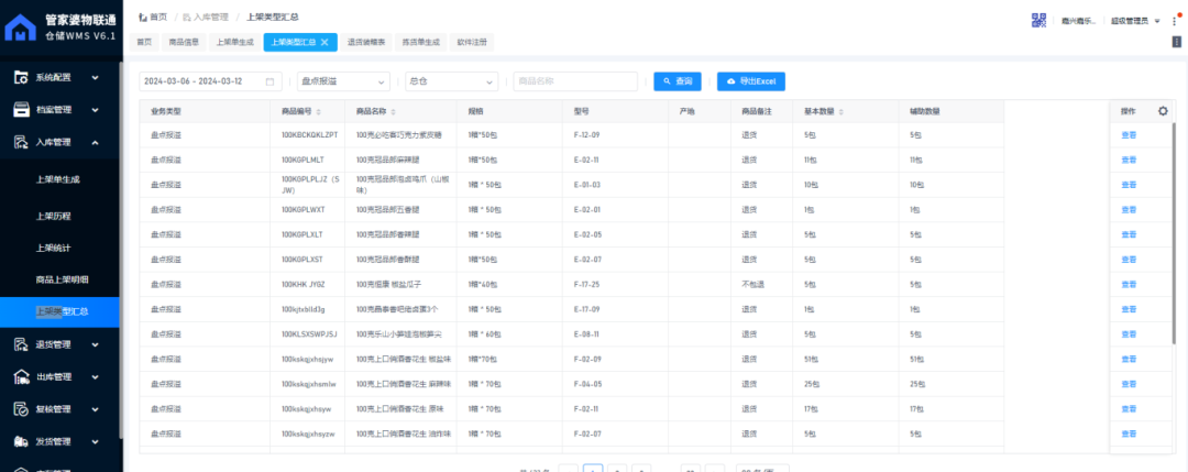 賦能工具:管家婆分銷(xiāo)ERP+ 物聯(lián)通倉(cāng)儲(chǔ)WMS 倉(cāng)庫(kù)基礎(chǔ)建議: 1、將整個(gè)倉(cāng)庫(kù)合理分區(qū),專(zhuān)人負(fù)責(zé)揀貨。 2、整個(gè)倉(cāng)庫(kù)根據(jù)區(qū)域,制定貨位規(guī)則,將商品所在位置都編入相應(yīng)貨位號(hào),并將貨位號(hào)有序掛或貼于貨架上,人員清晰可見(jiàn)。 3、商品管理批次,食品保質(zhì)期有保障。 4、退貨商品進(jìn)行分類(lèi),分正品、次品重新入庫(kù)。 通過(guò)物聯(lián)通倉(cāng)儲(chǔ)WMS系統(tǒng),采用手持PDA設(shè)備,進(jìn)行存貨上架,明確貨品在倉(cāng)庫(kù)的所在位置以及庫(kù)存數(shù)量。 解決:商品規(guī)范化擺放,通過(guò)系統(tǒng)引導(dǎo),不需要記憶商品原本放在什么位置,上架擺放更加快捷。 ![]() ![]() ![]() ![]()