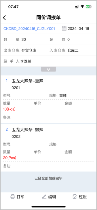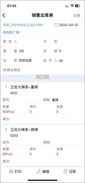 通過(guò)讀取D9系統(tǒng)倉(cāng)庫(kù)、往來(lái)單位、財(cái)務(wù)項(xiàng)目的基本信息授權(quán),實(shí)現(xiàn)業(yè)務(wù)APP端開(kāi)單、報(bào)表等信息管控。 ![]() ![]() ![]() ![]() ![]() ![]() ![]() ![]() 開(kāi)單過(guò)程中,可以臨時(shí)新增商品、往來(lái)單位信息,較此前不用退出當(dāng)前功能再去操作新增,更加方便。 ![]() ![]() ![]() ![]() ![]() ![]() ![]() ![]() 除盤(pán)點(diǎn)單外,采購(gòu)類(lèi)、銷(xiāo)售類(lèi)、錢(qián)流類(lèi)、倉(cāng)庫(kù)類(lèi)單據(jù)均支持草稿編輯,移動(dòng)端修改單據(jù)更便利。 注:若單據(jù)存在表頭自定義、打印記錄、項(xiàng)目字段,草稿編輯暫不支持上述類(lèi)型字段的編輯;且在編輯后上述字段內(nèi)容會(huì)丟失,請(qǐng)酌情考慮是否編輯。 ![]() ![]() ![]() ![]() ![]() ![]() ![]() ![]() 銷(xiāo)售開(kāi)單支持調(diào)用未完成的銷(xiāo)售訂單,實(shí)現(xiàn)快速開(kāi)單。 ![]() ![]() ![]() ![]() ![]() ![]() ![]() ![]() 從商品、客戶、職員三個(gè)維度查看訂貨交貨情況,訂貨量、已發(fā)/未發(fā)量一目了然。 ![]() ![]() ![]() ![]() ![]() ![]() ![]() ![]() 【試用說(shuō)明】 試用地址:https://ttcloud2.ttgrasp.com.cn/D9ERP 試用賬套:D9V76CS 用戶名:admin 密碼:123456 ![]() 更多管家婆軟件操作問(wèn)題,可以聯(lián)系梁老師17374708361 長(zhǎng)按識(shí)別二維碼添加好友,及時(shí)解答