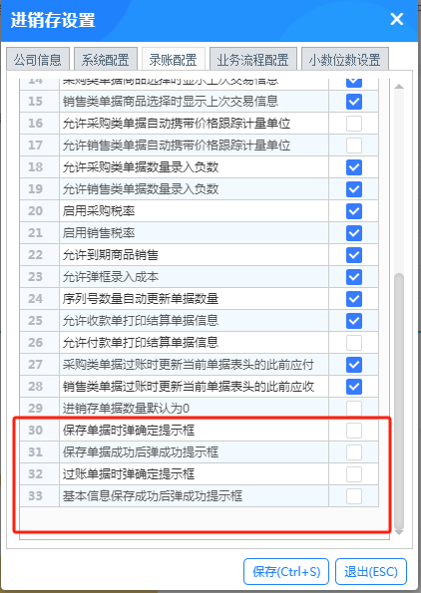 1、單據(jù)上往來(lái)單位選擇器,新增列配置。 2、新增往來(lái)單位基本信息字段供顯示、查看。 3、往來(lái)余額受權(quán)限控制。 ![]() 1、商品檔案、往來(lái)單位在空白新增、復(fù)制新增時(shí),編號(hào)默認(rèn)用所屬類(lèi)別最大流水號(hào)遞增。 ![]() 1、新增配置選項(xiàng),可取消單據(jù)保存成功、過(guò)賬成功、基本信息新增/修改成功的提示。 2、往來(lái)單位選擇器的往來(lái)余額受權(quán)限控制。 3、進(jìn)銷(xiāo)存匯總表里顯示成本均價(jià)。 4、回款統(tǒng)計(jì)表新增自定義公式功能。 5、報(bào)表打印時(shí),支持左側(cè)查詢條件在打印樣式里選擇。 6、多賬戶時(shí),預(yù)收預(yù)付的金額顯示對(duì)應(yīng)往來(lái)單位。 7、商品/往來(lái)單位新增時(shí)按所屬類(lèi)別最大值遞增編號(hào)。 ![]()