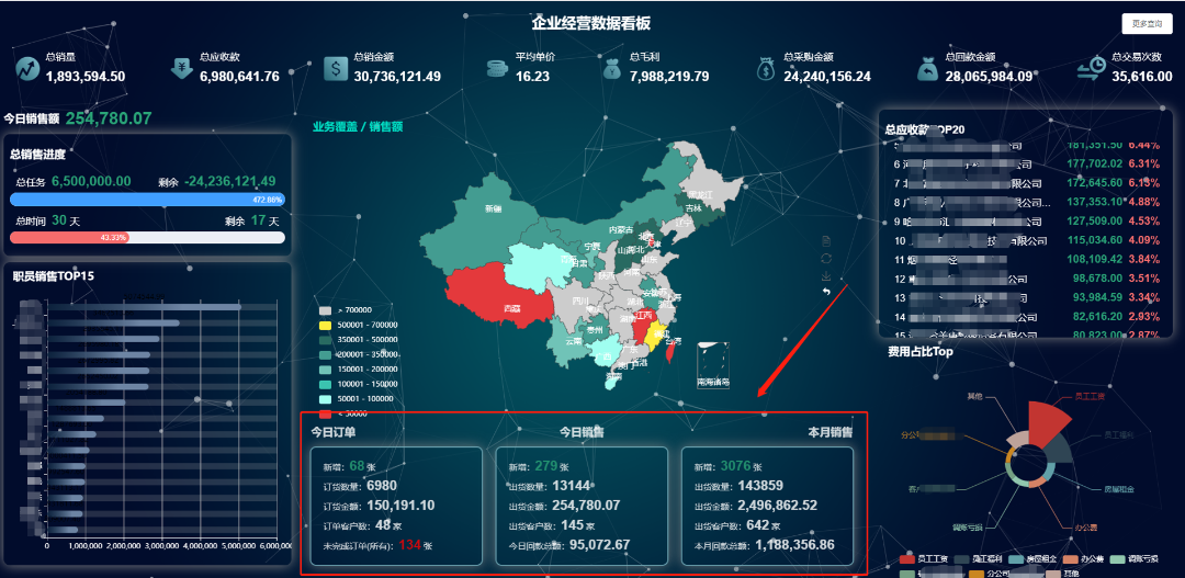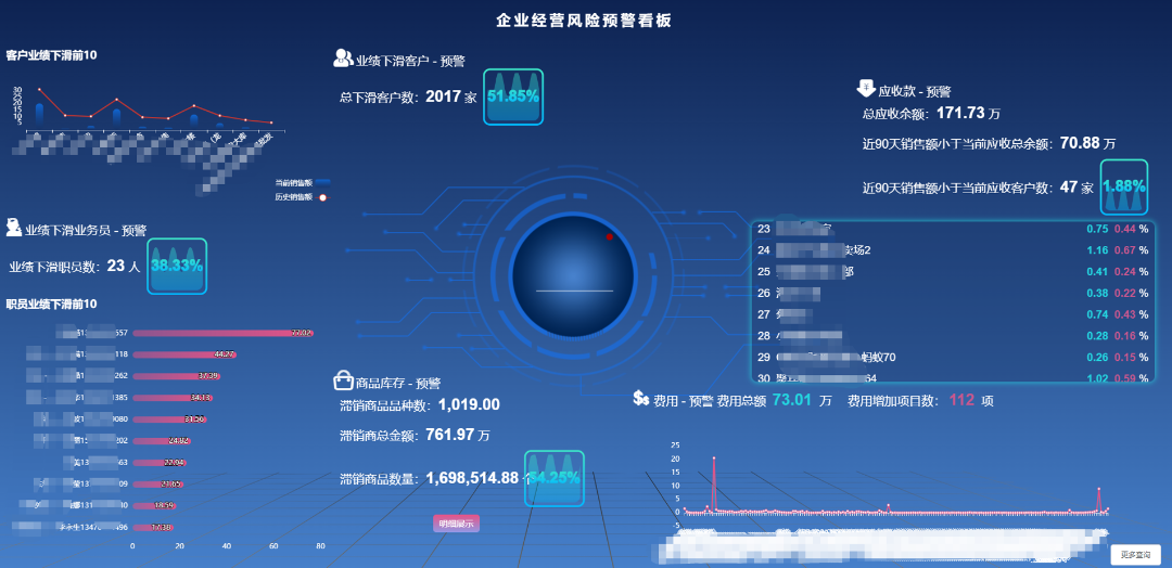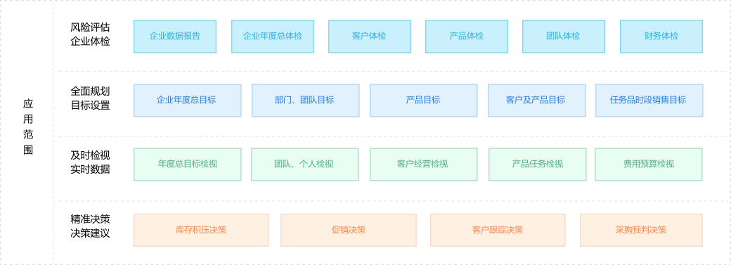 ![]() ![]() ![]() ![]() ![]() ![]() 1、多年對比統(tǒng)計報表需要大量人工去excel操作。 2、任務目標制定無數(shù)據(jù)依據(jù),多維目標任務很難設定。 3、目標設置后,沒有數(shù)據(jù)支撐,無法實時跟進任務目標的達成進度。 4、數(shù)據(jù)分析維度單一,客戶跟進無數(shù)據(jù)支撐。 5、數(shù)據(jù)不透明,各崗位無法及時知曉當前銷售進度。 1、提供4個年度數(shù)據(jù)同比、環(huán)比分析,數(shù)據(jù)分析更高效、準確。 2、客戶的類別是按照地區(qū)去劃分的,參考歷史數(shù)據(jù)制定準確銷售任務目標。 3、每周通過天通眼數(shù)據(jù),及時跟進任務進度,總結分析原因;任務目標完成進度大屏展示。 4、多個維度經(jīng)營客戶,提升客戶粘度。 5、銷售業(yè)績看板,實時經(jīng)營數(shù)據(jù)給老板、業(yè)務部以可視化大屏方式呈現(xiàn),提升企業(yè)形象的同時,讓數(shù)據(jù)透明化。
