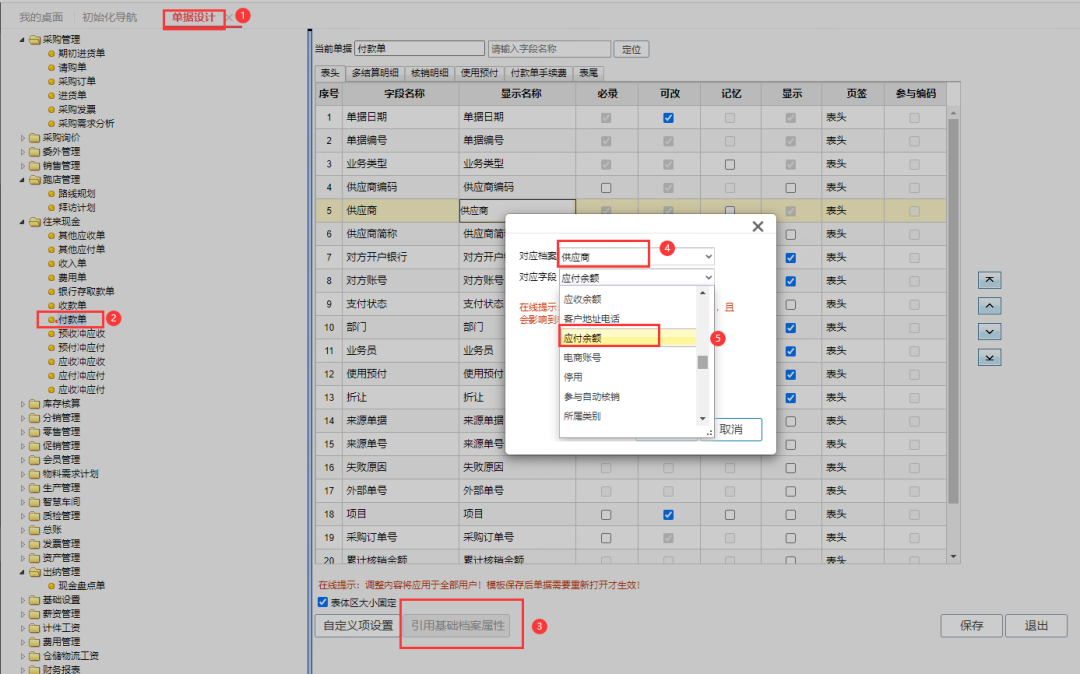 單據(jù)設(shè)計-選擇付款單-表頭-基礎(chǔ)檔案屬性-供應(yīng)商-應(yīng)付余額