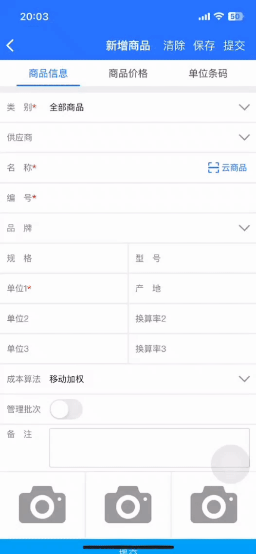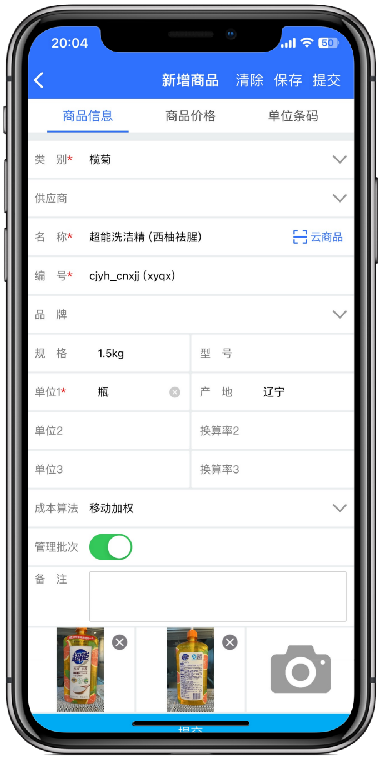 19. 商品信息新增,支持掃碼從條碼庫獲取商品信息,支持選擇成本算法、管理批次