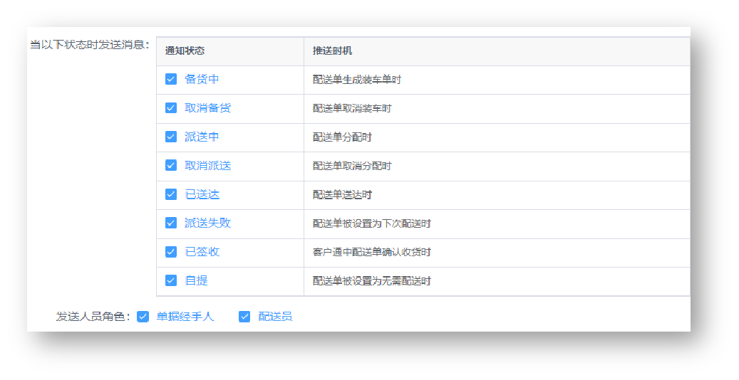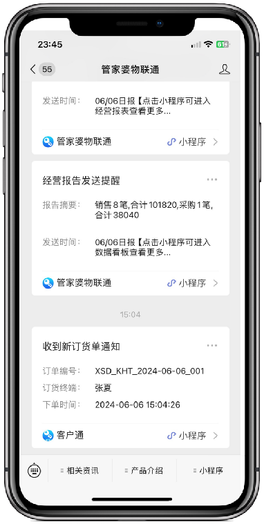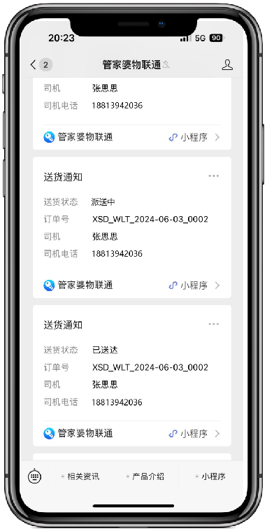 15. 公眾號(hào)通知消息,增加送貨通知,可通知給經(jīng)手人、配送員、客戶;支持客戶綁定公眾號(hào)接受通知消息