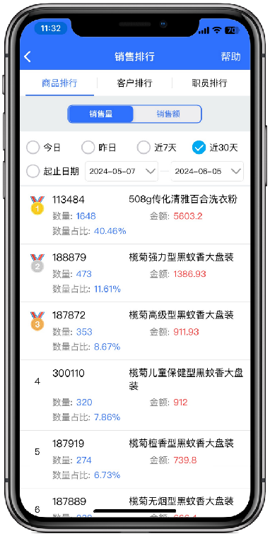 8. 銷售報(bào)表,增加占比字段,且在查詢條件中支持設(shè)置占比指標(biāo),可設(shè)置為數(shù)量、金額、毛利占比