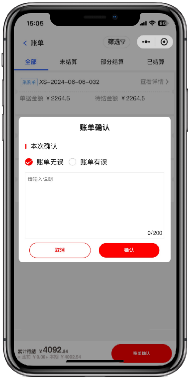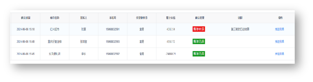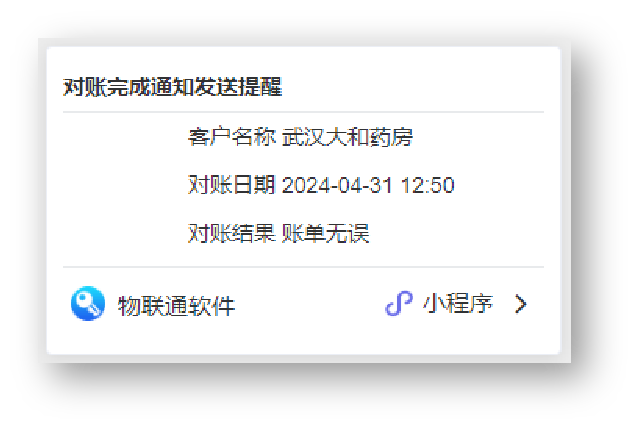 17. 公眾號(hào)通知消息,支持給客戶推對(duì)賬通知;客戶在客戶通中確認(rèn)賬單后推送對(duì)賬完成通知給業(yè)務(wù)員;業(yè)務(wù)員在后臺(tái)可查看賬單確認(rèn)記錄