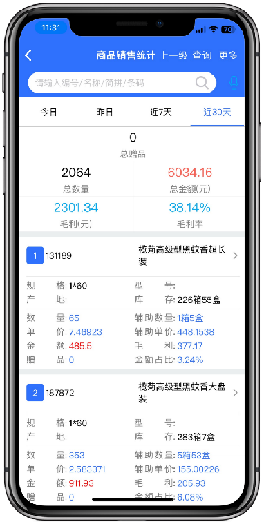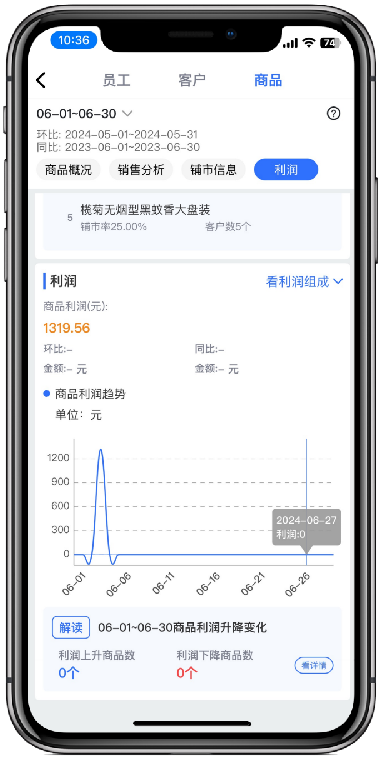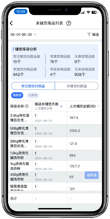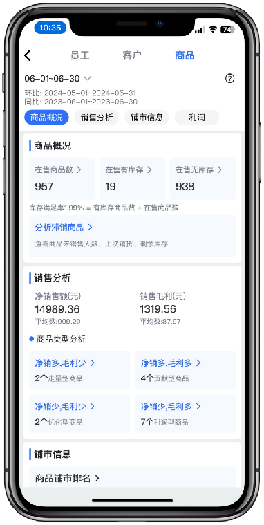 6. 新增商品分析報(bào)表,支持查看商品銷售類型、未鋪貨商品、商品利潤、鋪市排名表,并支持穿透查詢關(guān)聯(lián)數(shù)據(jù)